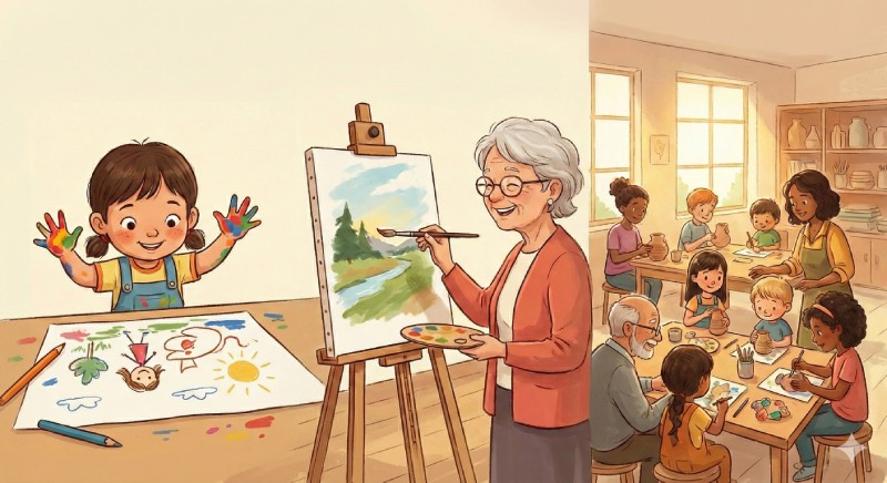Bring your imagination to life on a blank canvas. Our visual arts programs are tailored to suit every skill level, from curious toddlers learning basic shapes to adults mastering advanced shading techniques.