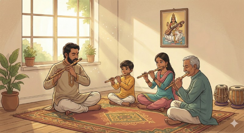 Whether you are a complete beginner struggling to get your first sound or an intermediate player wanting to master intricate ragas, our structured curriculum covers it all. We focus on essential techniques, including proper blowing (breath control), correct fingering nuances, and understanding rhythm: