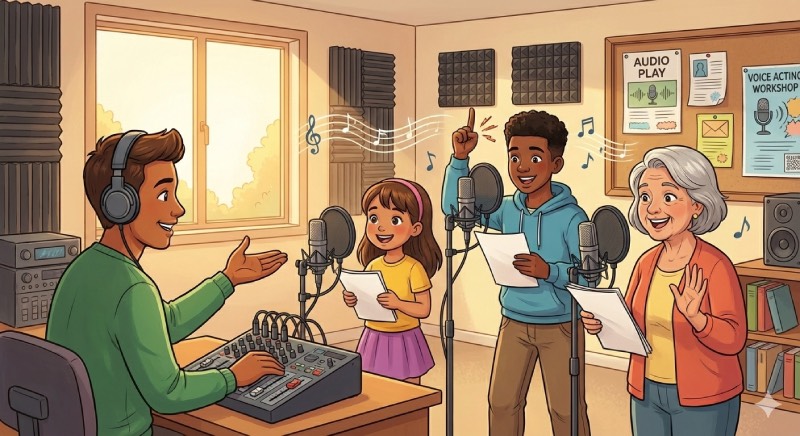 • For Kids & Teens: A highly engaging way to build vocal confidence, improve reading fluency, and spark creative imagination without the pressure of a physical stage.